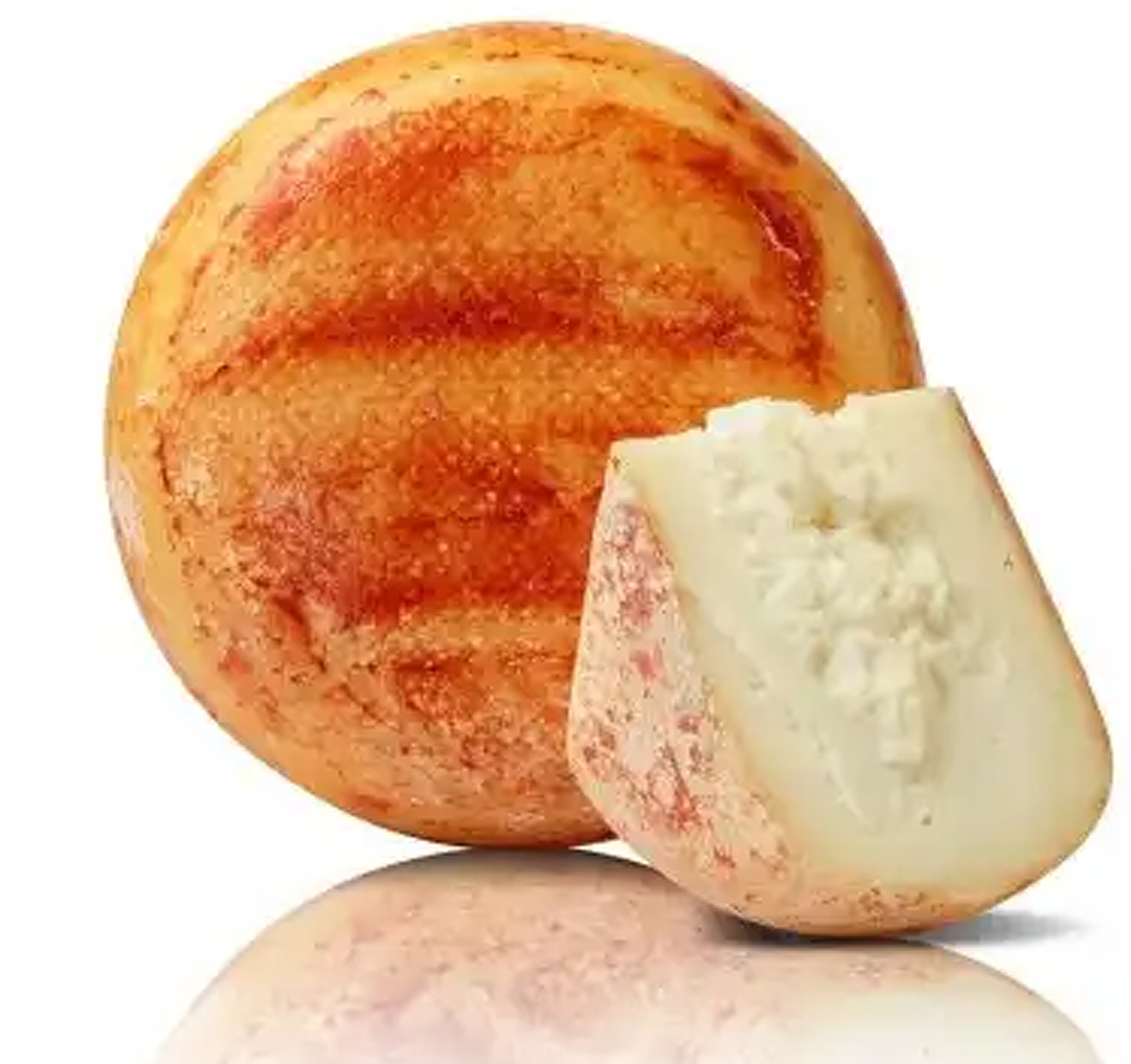 Die Oberfläche wird mit Tomatenkonzentrat behandelt, daher der Name Pecorino Rosso. Der Käse ist innen noch fast weiss, weich und hat kaum Löcher. Der Geschmack ist fein und frisch.